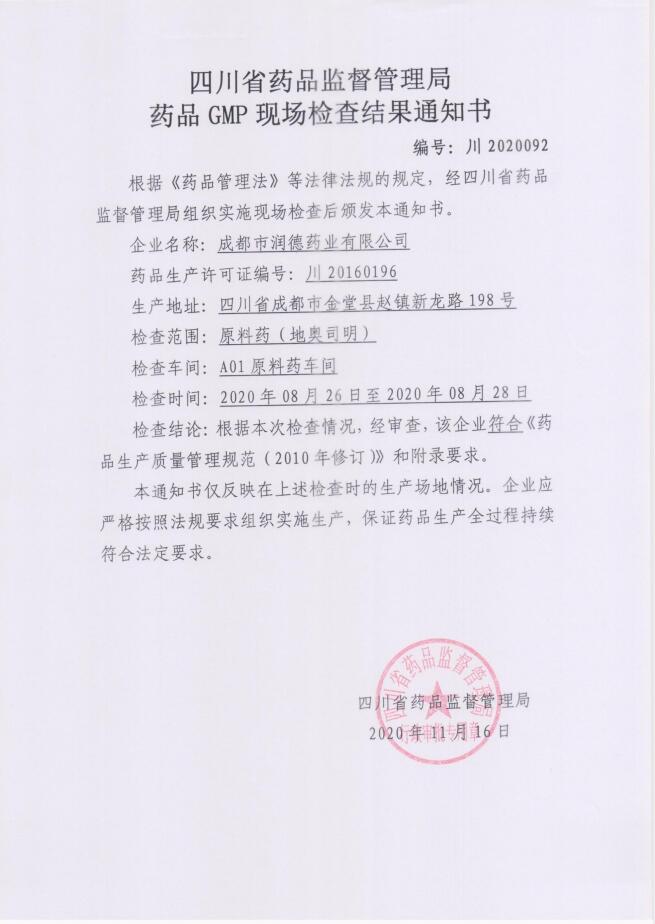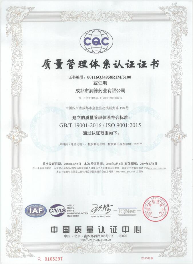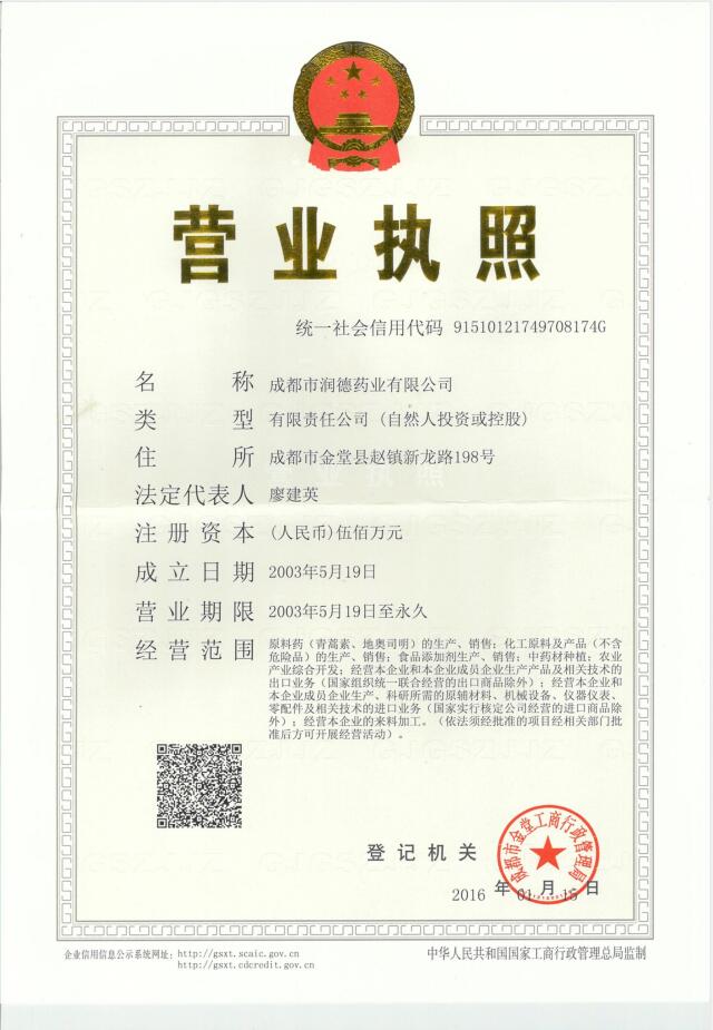 成都市潤(rùn)德藥業(yè)有限公司是一家以天然植物為原料,主要從事植物中間體、醫(yī)藥、食品及保健品等有效成分的提取、合成、研制和開(kāi)發(fā),集科、工、貿(mào)于一體的民營(yíng)科技型企業(yè)。公司成立于2003年,位于中國(guó)“山水田園城市”——成都市金堂縣,占地面積37000多平方米?,F(xiàn)有廠(chǎng)房、設(shè)施12000余平方米;距成都32公里,成金快速、成南高速、成綿高速、唐巴省道、成達(dá)鐵路、成渝鐵路經(jīng)縣境而過(guò);成綿復(fù)線(xiàn)高速、成都至三臺(tái)城際鐵路規(guī)劃在金堂趙鎮(zhèn)有出入口和站點(diǎn);在建的金簡(jiǎn)仁快速路與在建的天府國(guó)際機(jī)場(chǎng)相連;已經(jīng)建成通車(chē)的金堂大道橫貫全縣;良好便捷的交通、寬松和諧的創(chuàng)業(yè)環(huán)境,為公司的持續(xù)發(fā)展創(chuàng)造了難得的先機(jī)。目前公司已成為設(shè)施現(xiàn)代化,技術(shù)一流,環(huán)境花園式,具有可持續(xù)發(fā)展的高新民營(yíng)科技型企業(yè)。