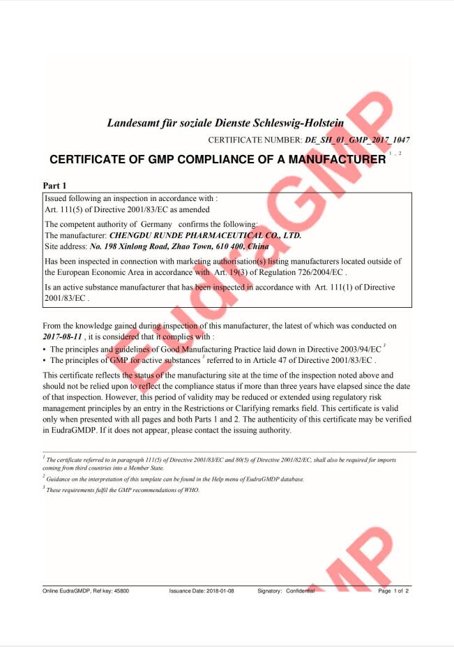 公司現(xiàn)有在冊(cè)員工62人,其中技術(shù)人員工12人,高中級(jí)職稱(chēng)5人;從事藥物研發(fā)和新產(chǎn)品研發(fā)人員3人;擁有標(biāo)準(zhǔn)化天然植物萃取車(chē)間、合成車(chē)間,符合GMP要求的精干包車(chē)間,以及設(shè)備一流的質(zhì)量控制中心和新產(chǎn)品研發(fā)中心;建立了相對(duì)完善的質(zhì)量管理體系,完善的公用工程系統(tǒng),具有充足的發(fā)展空間;公司通過(guò)了GMP認(rèn)證、EUGMP、CEP、KOSHER認(rèn)證,按照ICH Q7管理規(guī)范組織生產(chǎn),嚴(yán)格按EUGMP的規(guī)范要求實(shí)施,為企業(yè)的競(jìng)爭(zhēng)力提供持續(xù)保障。